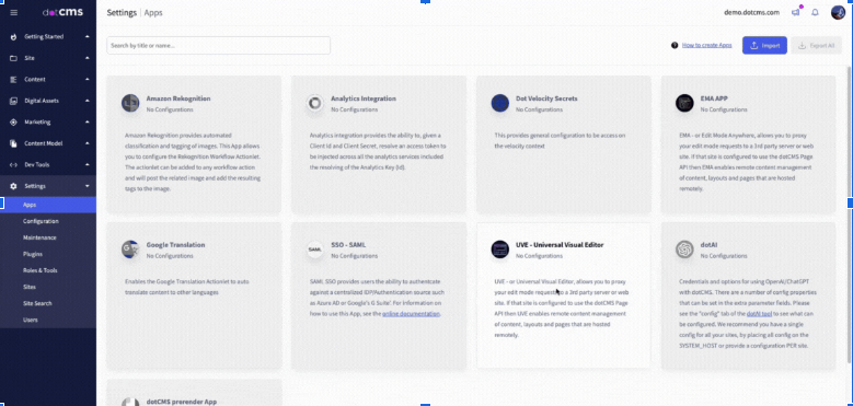 Let’s start by configuring the UVE in dotCMS for our .NET application. This step is needed to use UVE to edit pages built in any JavaScript framework and served by any external hosting service. Next, let’s set up the Universal Visual Editor: