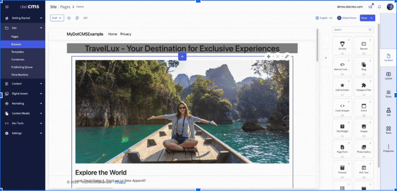 We'll use the existing "Home" page in the dotCMS demo instance as our example.