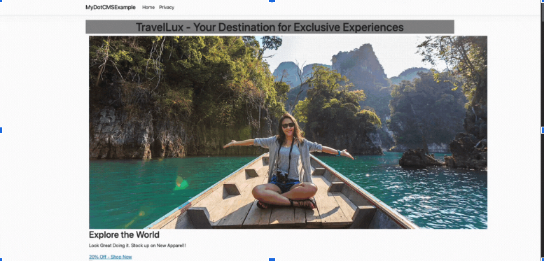We will begin by building a simple .NET App that’s fully editable with dotCMS Universal Visual Editor. Let's see the final result of the tutorial: