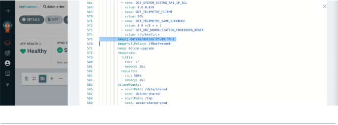 Here’s a more concrete illustration of how you can change your dotCMS version and let ArgoCD do the rest.