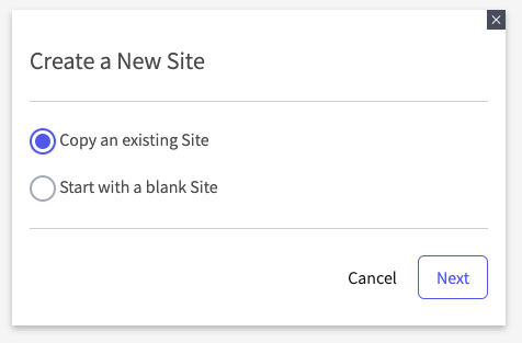 After clicking New Site, you will be given a choice between "Copy an existing Site" or "Start with a blank Site."