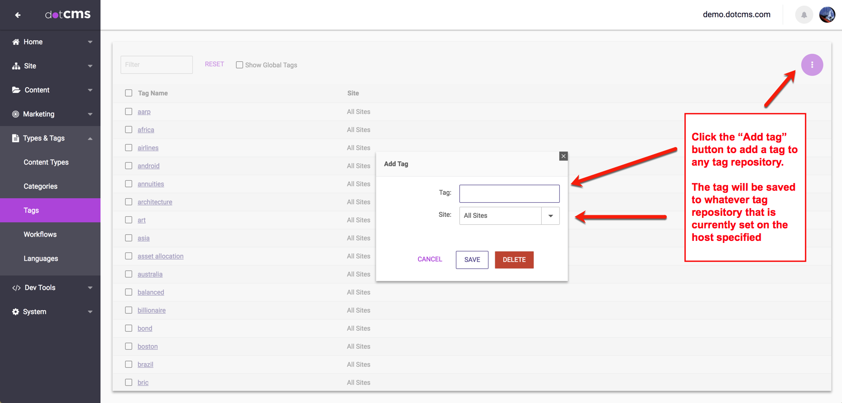 Adding and Editing Tags in the Tag Repository