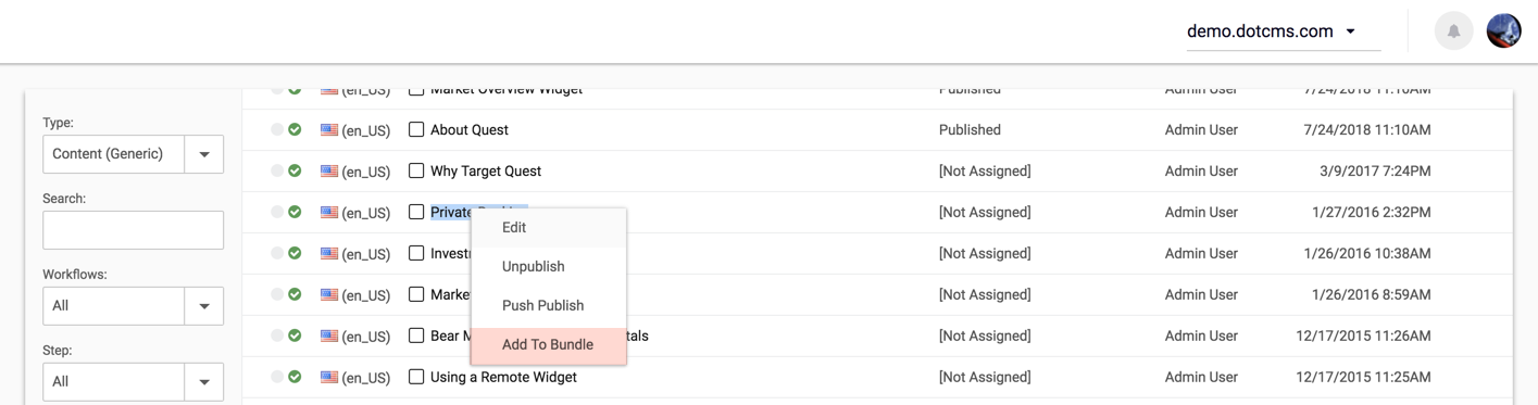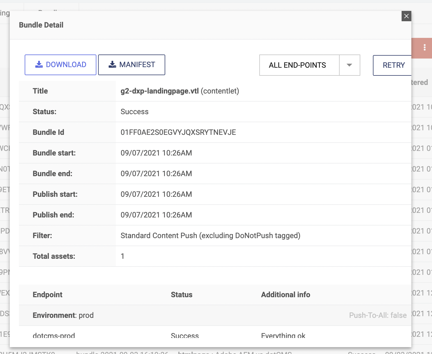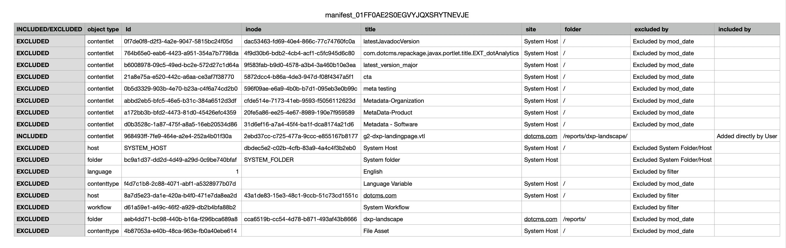 dotCMS Bundles include a downloadable manifest that shows everything that is included in the bundle.
