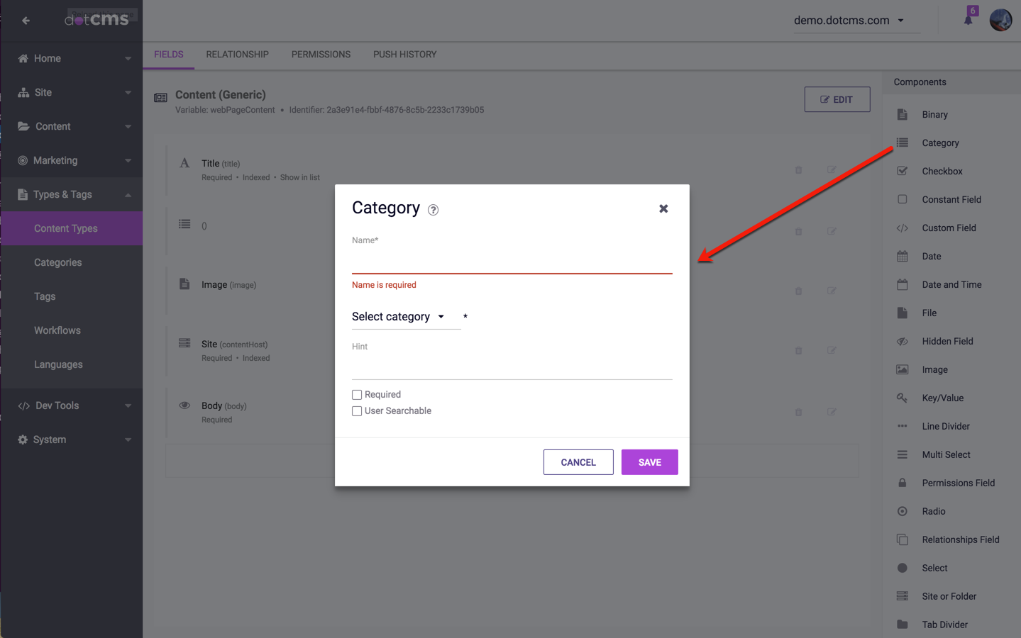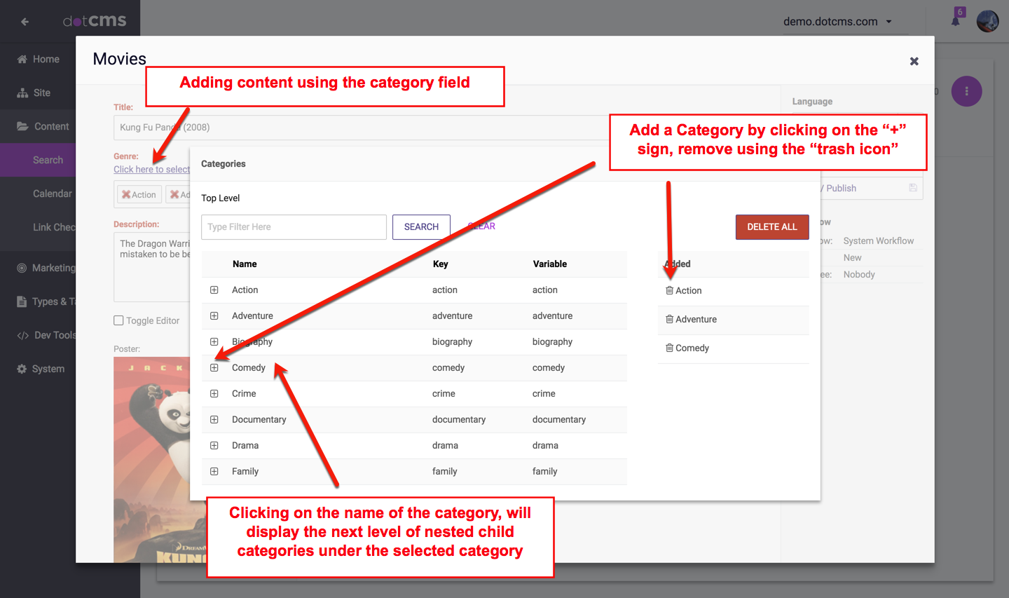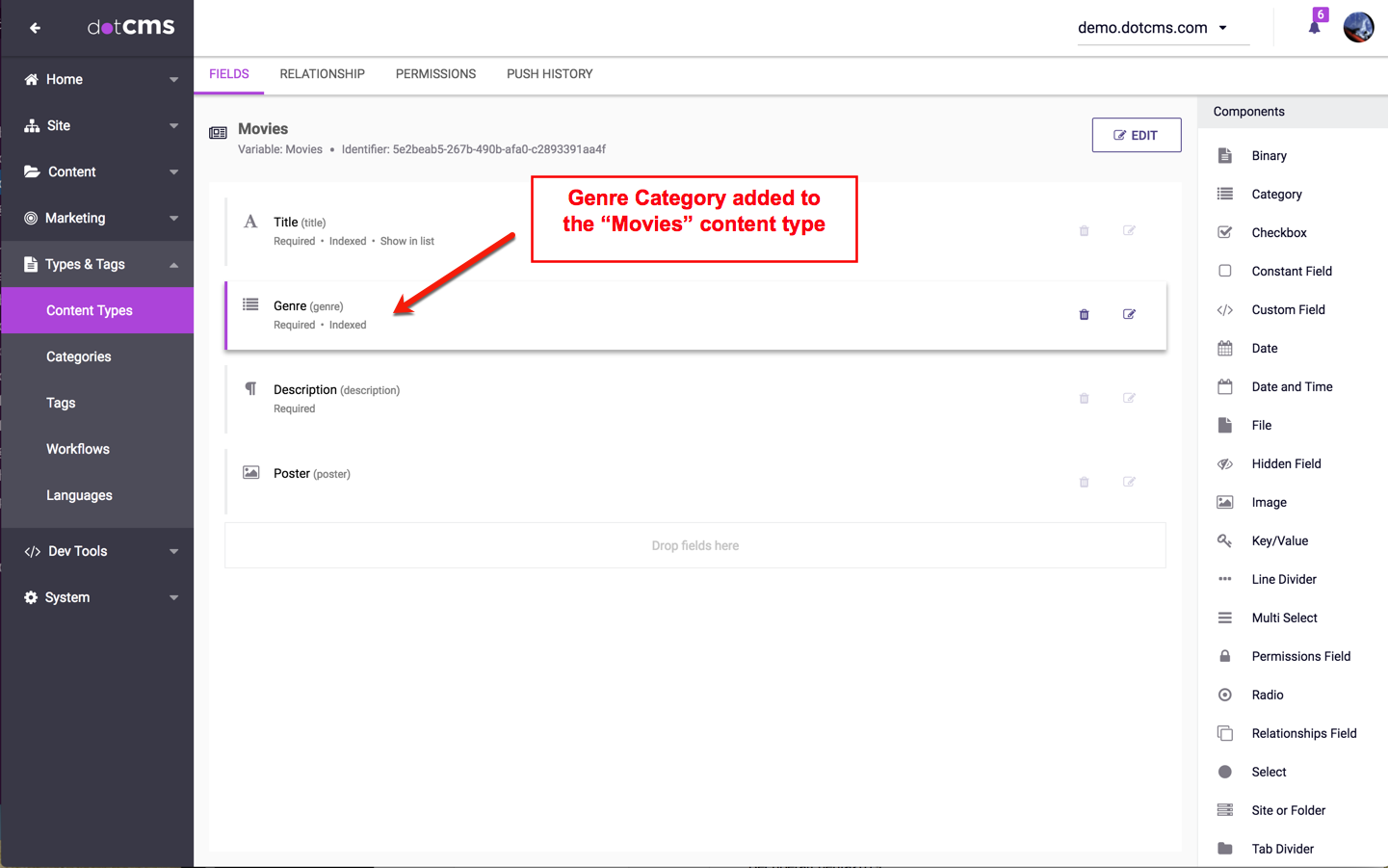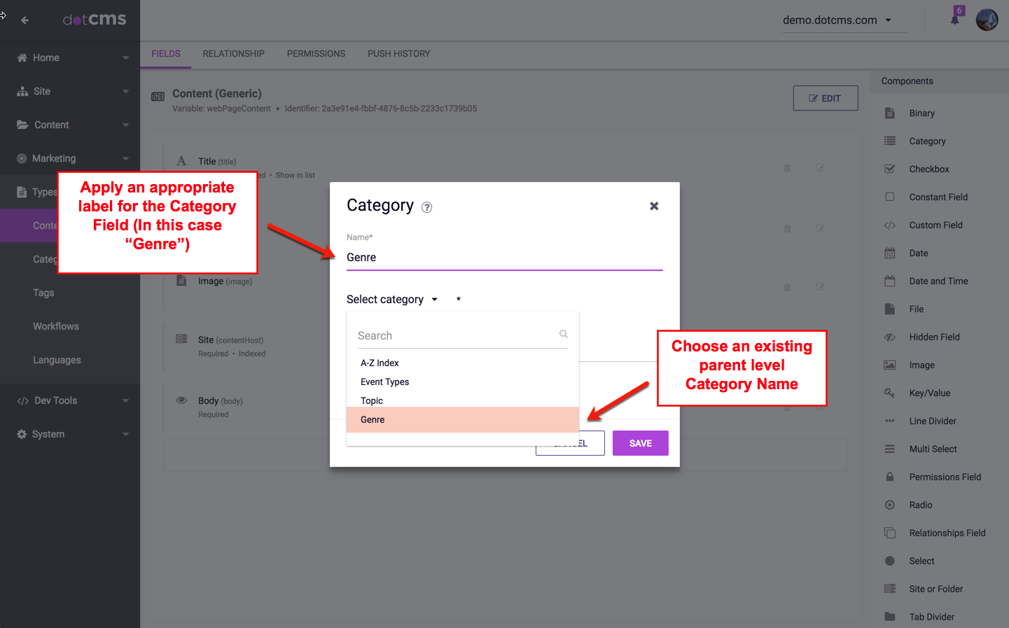 - If you wish for content contributors to be able to select from multiple categories on a single piece of content, you must add multiple category fields to that content type.