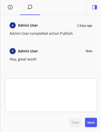 The task tab includes entries that document workflow actions performed on the contentlet. This tab also permits users to leave comments within this action history.
