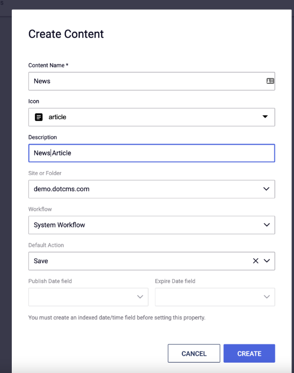 Workflow Scheme - sets a specific workflow scheme to control user access content creation and the steps required to create and publish content. This setting is automatically set to the "Default Scheme," however, custom workflow schemes can be created as desired.