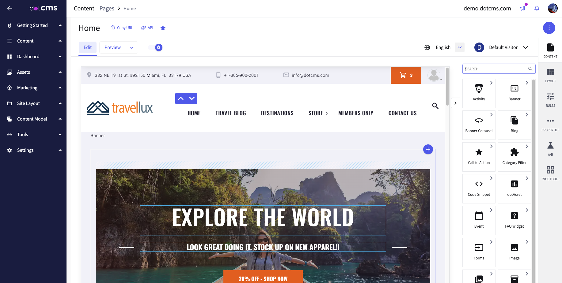 Edit Mode provides a back-end user permissioned view of the Page and the content displaying on the page. It allows you to make changes to the Page, such as adding and removing content within Containers, as well as inline editing of the content itself.