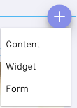 In Edit Mode, each Container displays a "+" button through which you can populate the container with either content, a widget, or a form.
