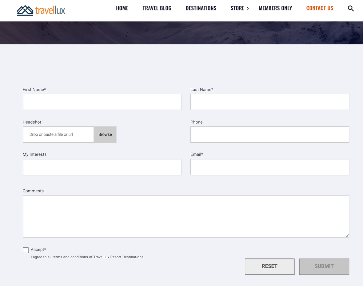 Complex, reusable forms can be created in dotCMS in a few minutes without any knowledge of HTML or Velocity through the use of the Form Content Type. Emailing of the form, form field styling, and form validation all are handled automatically when placing a piece of form content on a page. Follow each of the following steps to create a fully functioning form, such as the one seen below, in dotCMS.