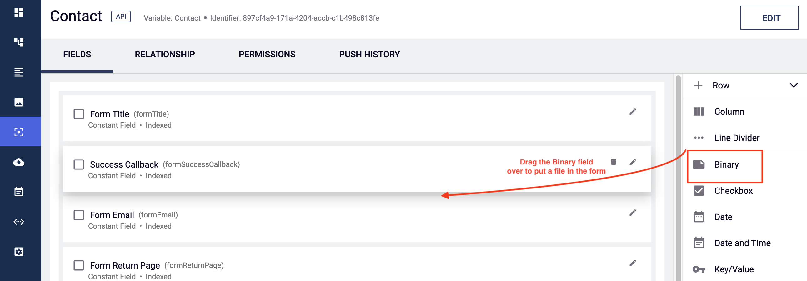 - Got to the Form Content Type