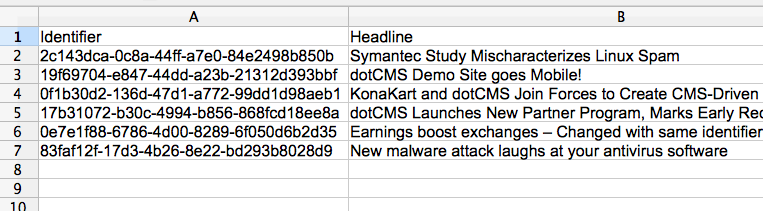 • When you export content from dotCMS to a CSV file, the identifier column is always included.