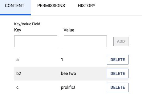 In the traditional interface, adding content to a Key/Value Field is as simple as specifying a key and a value in the field. The addition will be added to a list visible beneath it.
