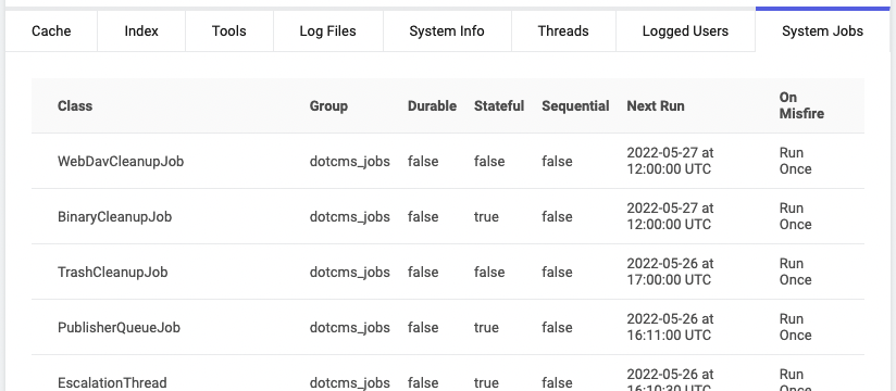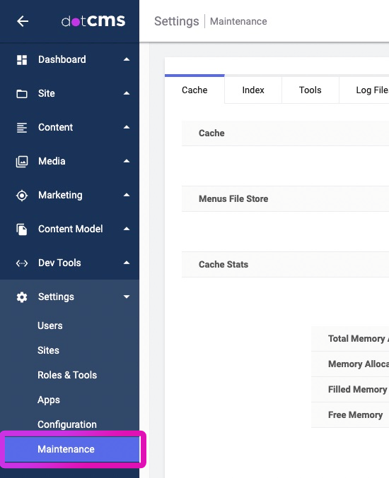 The back-end maintenance tasks listed in this section can have adverse site-wide repercussions if not executed properly. Only trained dotCMS content architects, system administrators, or developers should attempt these maintenance tasks. It is recommended that a dotCMS backup be conducted before executing certain high-risk maintenance tasks.