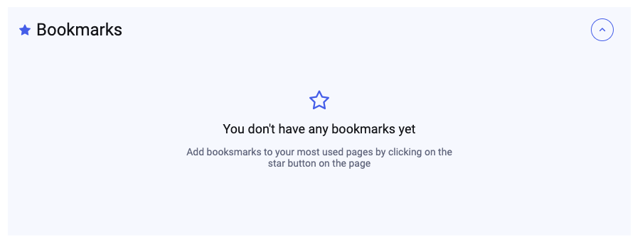 Above the list is an accordion-style pane, collapsed initially, that contains your selected bookmarks, seen below without and with contents, respectively.