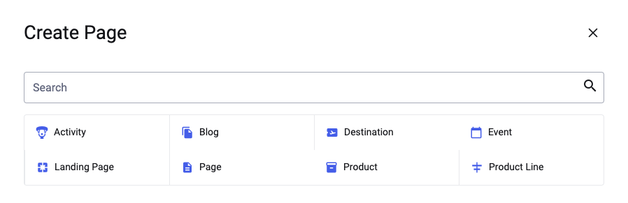 Clicking the Create button opens a dialog prompting you to select either a traditional Page or one of the available URL-mapped Content Types. After your selection is made, the creation of the new piece of content proceeds as elsewhere in dotCMS.