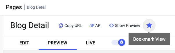 Selecting any item from the list takes you to that item's Preview Mode view, from which you can also access Edit Mode or Live Mode.
