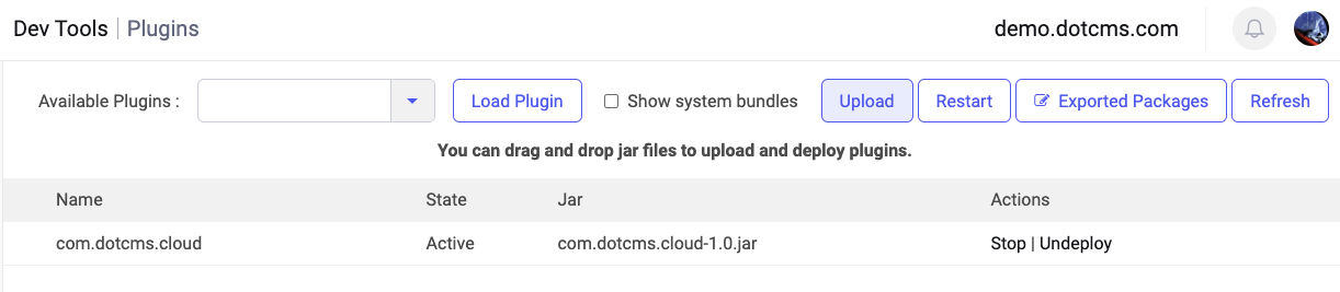 Upload and deploy the resultant JAR file — in this case com.dotcms.owasp.encoder-0.2.jar — via the admin panel under Dev Tools → Plugins.