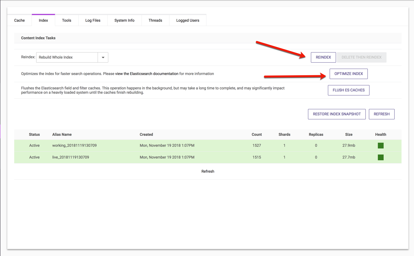 For more information on how indices are created and managed in dotCMS using ElasticSearch click here.