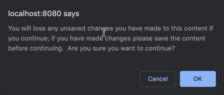 Make sure to that you have saved changes to the current content being edited before adding a new piece of content to relate, or the changes will be lost. A warning dialog box will appear to remind content publishers to save content before adding new related content.