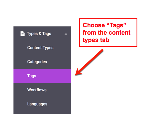 Tag Repositories can be managed from the Tag Manager, which can be accessed from the Content Types drop down menu. Each individual Host has its own Tag Storage field where a specific Tag Repository can be defined.