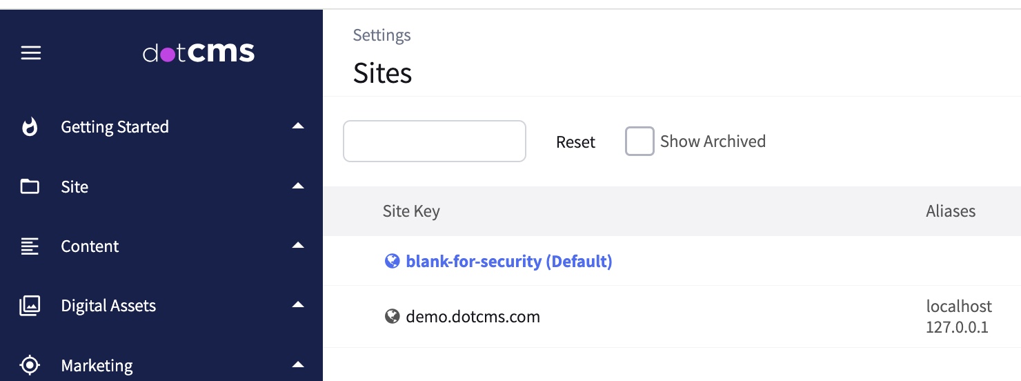 - If your current implementation relies on the default site existing on a non-blank host, please contact dotCMS support and/or your upgrade manager for further assistance