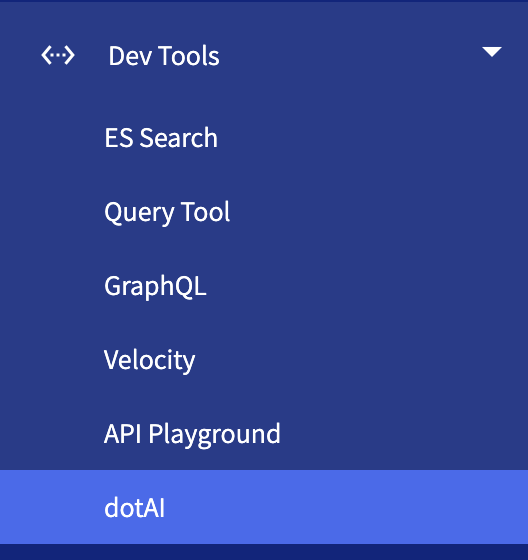 First of all, make sure that you have the dotAI portlet inside of the Dev Tools tool group: